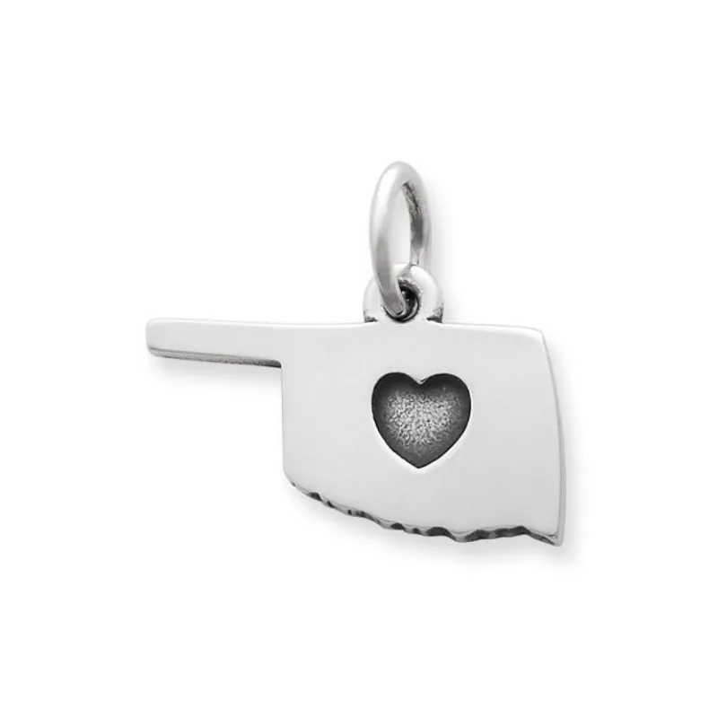 State pride is the cornerstone of this beautifully crafted sterling silver charm, with the outline of the state embracing an engraved heart at its center.